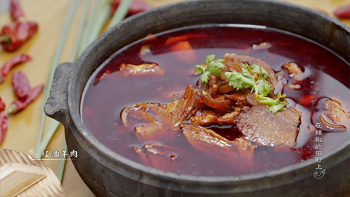 辣椒籽,原本是收獲過程中的邊角料,但在擅長與辣椒打交道的循化人手中,竟意外的成就了一道經典美食,椒鹽是循化一帶製作烤羊排的專屬調料,在酥脆軟嫩的口感中,增添了一份濃厚的椒香。合馬鎮,曾是川鹽入黔的咽喉地帶,當地的麻羊是擺大席彰顯物質富足的重要食材,紅油羊肉是招牌大菜,講究湯汁紅亮不濁,紅油與羊肉完美附著,羊肉緊致細嫩,紅油綿密濃烈。