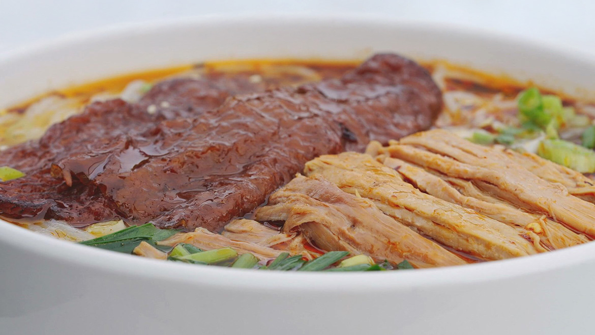 雲南昆明的宜良烤鴨頗負盛名,以松毛卷做燃料,是宜良烤鴨的創舉,皮酥、肉嫩、骨軟,以及恰到好處的肥瘦比,輔以甜麵醬、椒鹽和蔥白食之,肉食愛好者絕對無法抗拒誘惑。玉溪撫仙湖是抗浪魚最初的棲息地,「醬香抗浪魚」滋味醇厚綿長,肉質細軟鮮嫩。上午七點,吃米線的人陸續前來,豬腳米線得名於帽子,也就是覆於表面的皮和肉,豬皮經過油炸和燉煮,綿軟柔嫩,豬肘部位的瘦肉滷煮至透爛,兩指輕易便可撕開,帽子肥瘦相宜,米線筋道爽滑。黃辣丁是南盤江中常見的小鮮,「醬瀆黃辣丁」馥郁鮮香,無論是過油起酥的鯉魚,還是個性鮮明的肥腸,皆可用「瀆」將其進一步馴化。骨頭糝,源自一種古老的肉食保存方式,將豬骨、豬雜、油渣剁成細碎的米粒狀,再拌以祕製調料發酵醃製而成,骨頭糝蒸熟即可享用,麻辣醇厚,鹹香味釅,是難得的下飯利器。寶洪茶是雲南為數極稀的小葉種茶,啜飲時滿是板栗香,醇濃鮮爽。