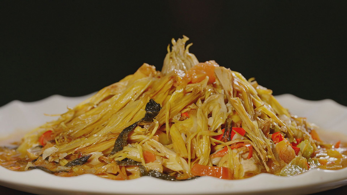 在雲南大理,樹葉變成了盤中的菜餚,鮮葉裹上天婦羅衣,經高溫菜油的洗禮,隨即披上金黃的銳甲,酥脆可口。在當地的咖啡莊園,嫩葉、果皮、生豆,也能流露異彩,咖啡煮雞、咖香紅燒肉,染上咖啡的風味,滿盤濃香滑軟。番茄炒攀枝花,濃稠爽口,雖無腥葷,卻依舊撩人。紫皮石斛,莖節長、直徑大,以鮮條燉雞,紫皮石斛的膠質與雞肉的油脂充分融合,吃來微甜回甘,帶有草木清香,毫無傳統藥膳的苦澀感,融入豬肉丸,可使之滑嫩爽口。石斛花用於蒸蛋,更添幾分綿密和細膩。石斛的吃法繁多,做甜品最為講究,帶著青草藥香的「石斛凍」爽滑香甜。棕包米,有樹上魚子醬之美稱,棕包米炒肉,也叫姑爺菜,清苦與肉香融合,酸辣與微甜同陳。棕樹的首級是頂尖的美味,也有人稱其為棕樹心,棕樹心刺身,佐以芥末和醬油,生脆爽口。